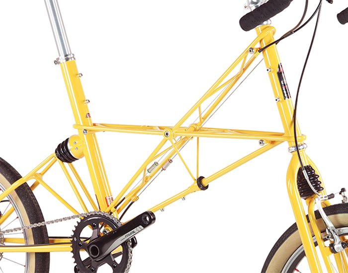 | Frame | Moulton space-frame, fillet-brazed construction in Columbus Spirit, Kaisei NiCrMo and Reynolds steels. Stainless-steel dropouts. [sizing] |